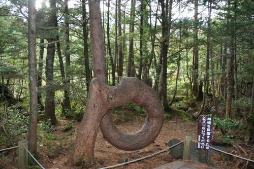 木々に囲まれた遊歩道は少し薄暗くヒッソリとしていました。小さな湖面を見渡せる展望台の