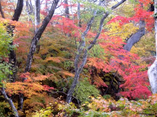 2013年06月27日。「【トイレ付きバス】ゆっくり出発・早めの帰着 佐藤錦サクランボ狩りと1キロ付き! 名湯!湯田中温泉の5つ星の宿」という一泊二日のツアーに参加してきた。横浜西口を08:30、町田を09:45発の大型バスに総勢24名参加。車内は超ゆったり。町田からは「町田街道」を、「高尾インター」で「圏央道」へ。さらに「関越自動車道」へと進み、「小諸インター」で降りて、「髙峰高原」へとつづら折りの山道を延々と20分ほど登って行く。麓は好天だったが、登って行くほどに霧が深くなって辺りの風景がぼやけてきた。標高2000メートルほどの「車坂峠」に着いたときは、まったくの霧の中で、晴れていれば周辺の山々や富士山が見える筈が何とも残念。
